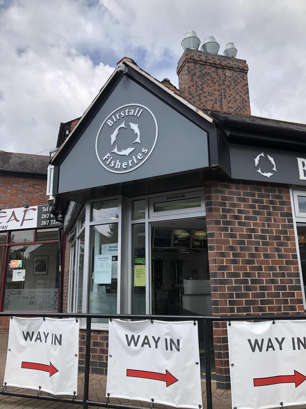 It’s a “COVID secure” chippy with signs directing customers in and out, markers on the floor where to stand and screens and hand sanitiser on the counter.